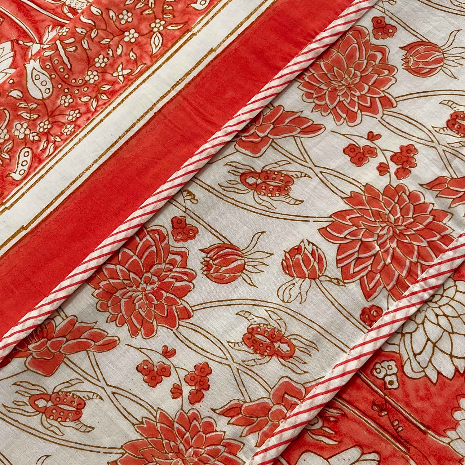 Orange Floral Soft Cotton Printed Doube Bed Dohar- 90 inches x 100 inches