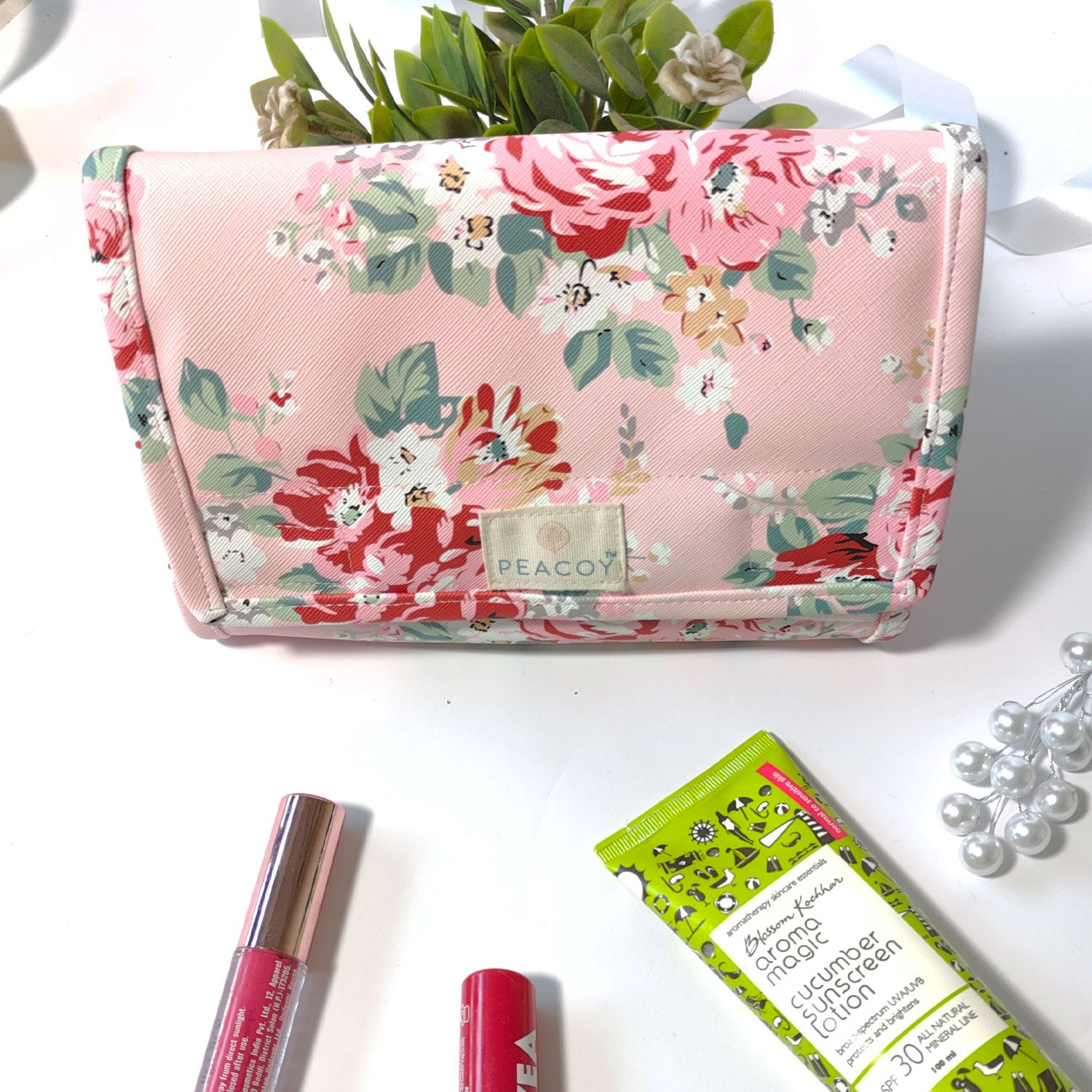 Foldable Travel Kits for Jewellery and Essentials | Pink Flower Design pouch