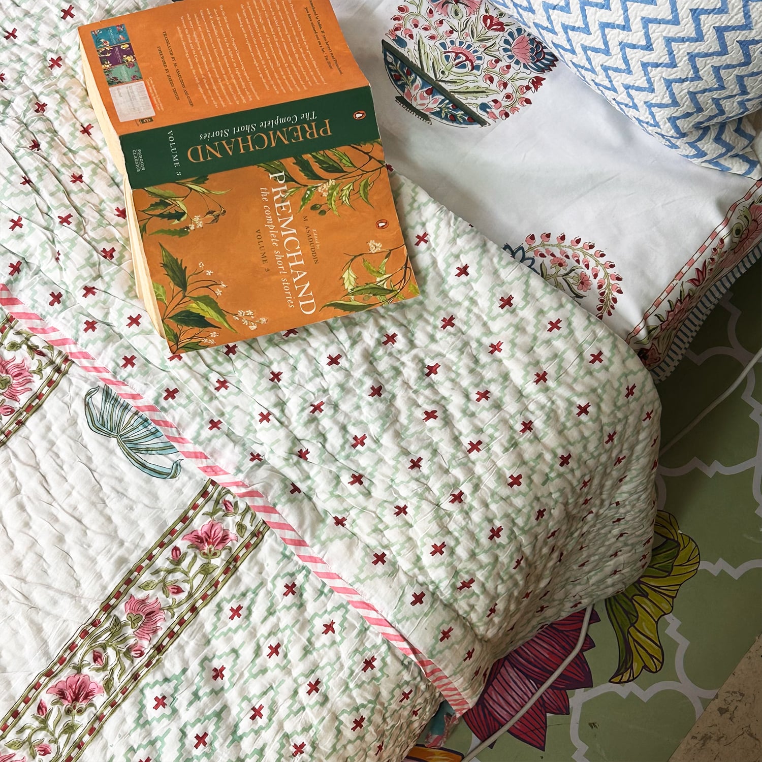 Pink Floral Jaal | Double Bed Quilt | 90 Inches X 100 Inches