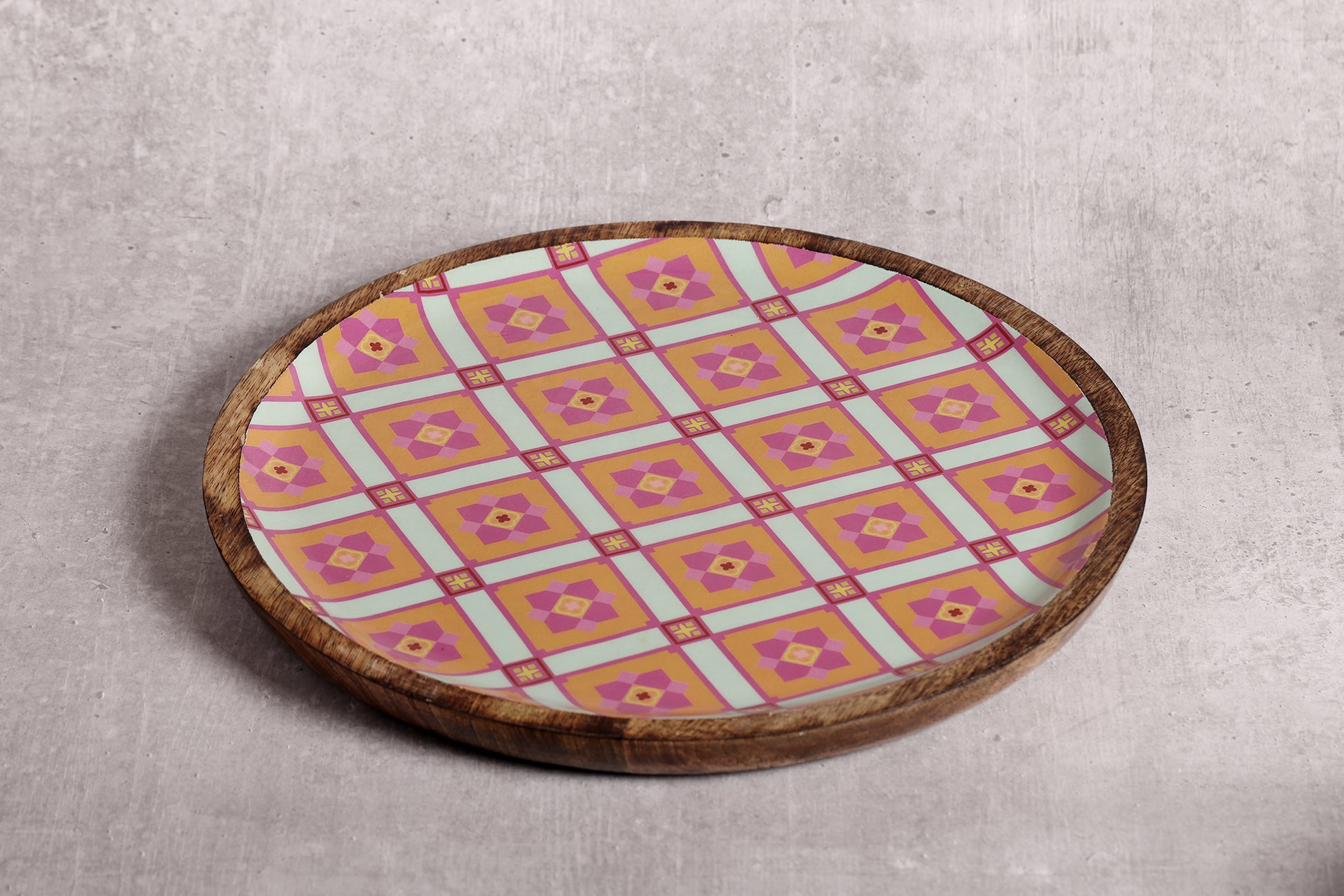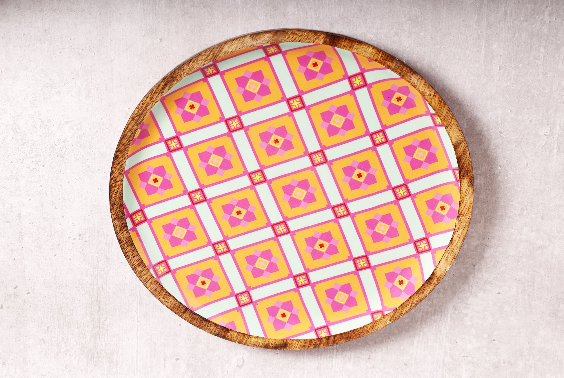 Pretty Pink Floral Charm Round Mango Wood Platter with Enamel Finish | Peacoy