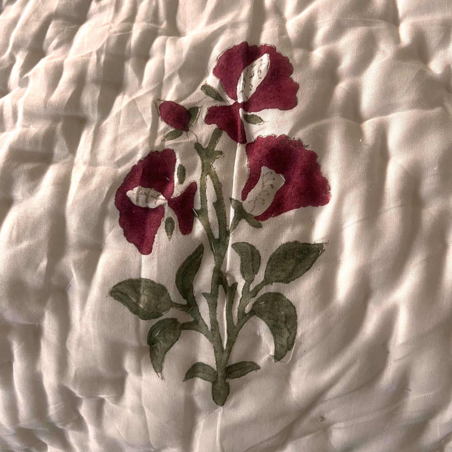 Red & Greenish Floral Soft Cotton Printed Quilt Single Bed - 60 inches x 90 inches