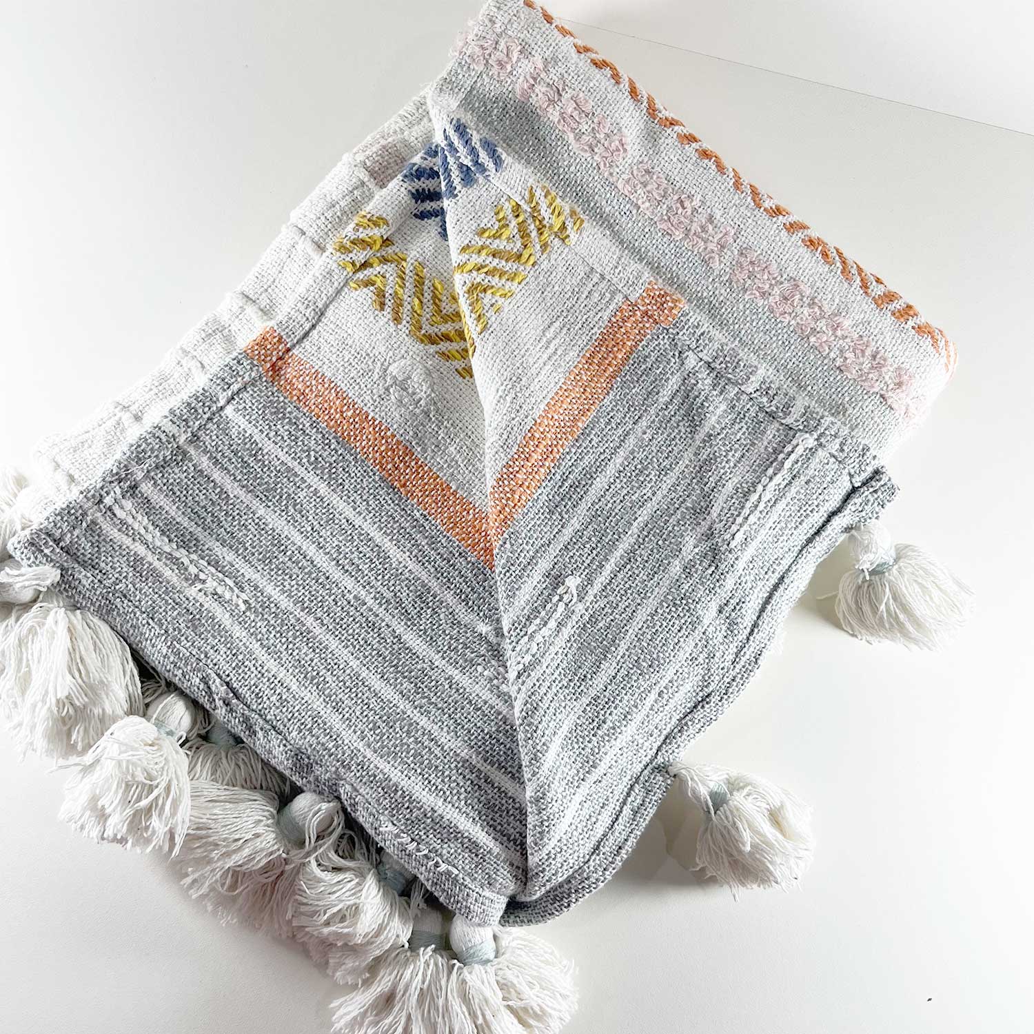 White Cotton Throw with Tassels 60 inches x 50 inches