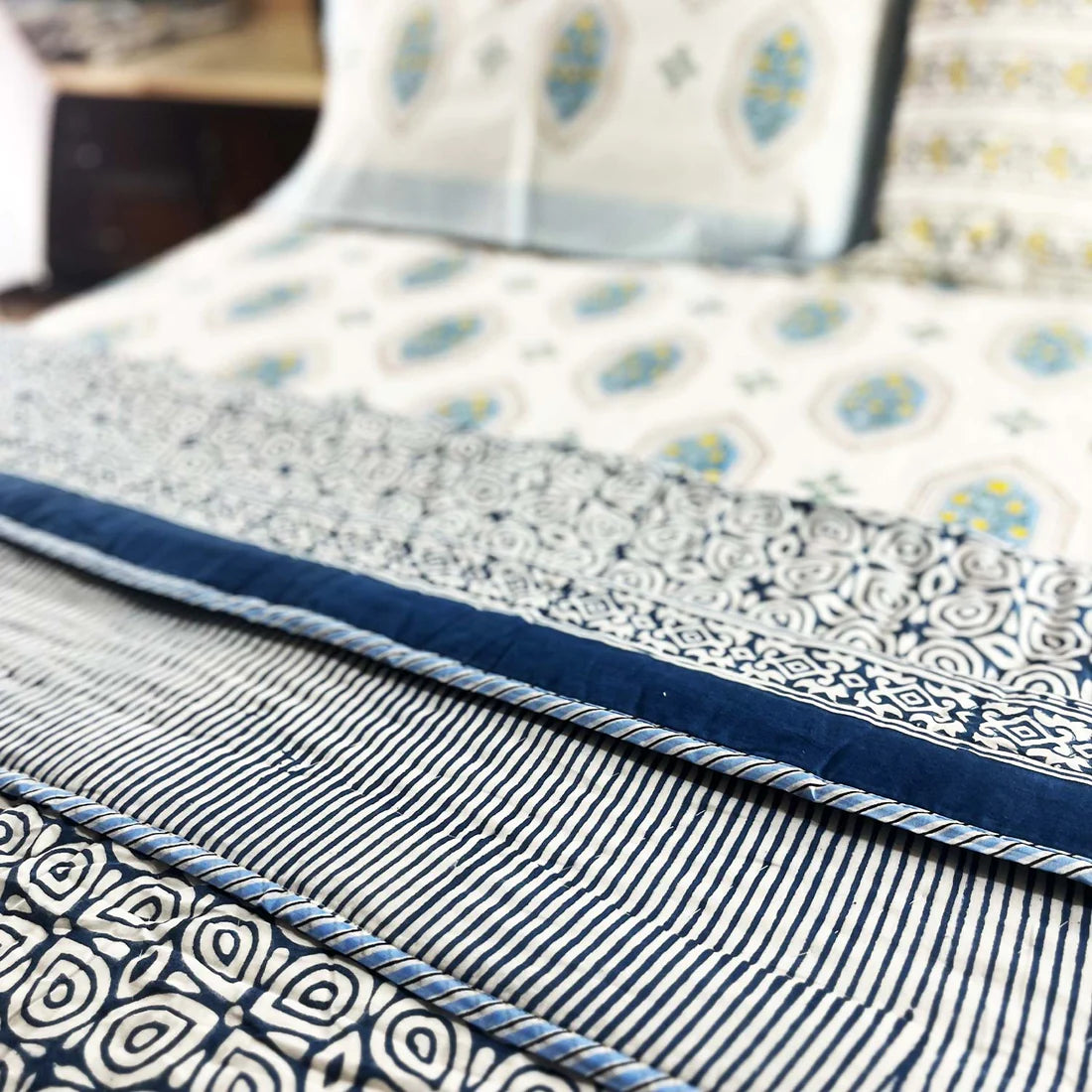 - Percale cotton 200 TC fabric, hand block printed with azo-free dye