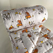 Bring the softness of nature and the cuteness of Giraffe to your home with block printed quilt. Made of pure cotton and voile fabric (mulmul), and stuffed with surgical cotton, it will tuck you into luxurious comfort. Experience a cozy nap while at the same time revamping your bedroom. With a block-printed design and an azo-free dye, this lightweight quilt will add green allure to your room.