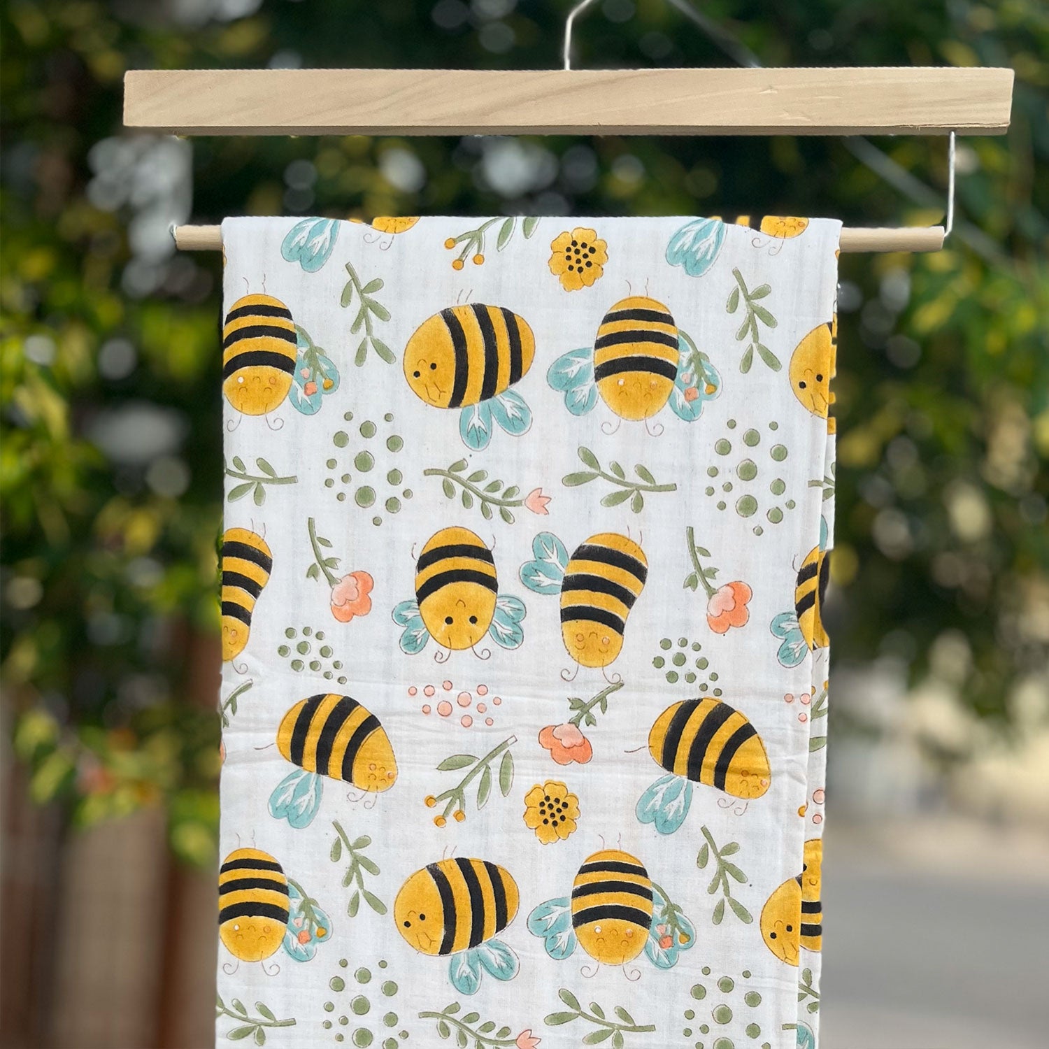 Yellow Honey bee Prints Kids Single Dohar | Single Sided | 40x60 Inches