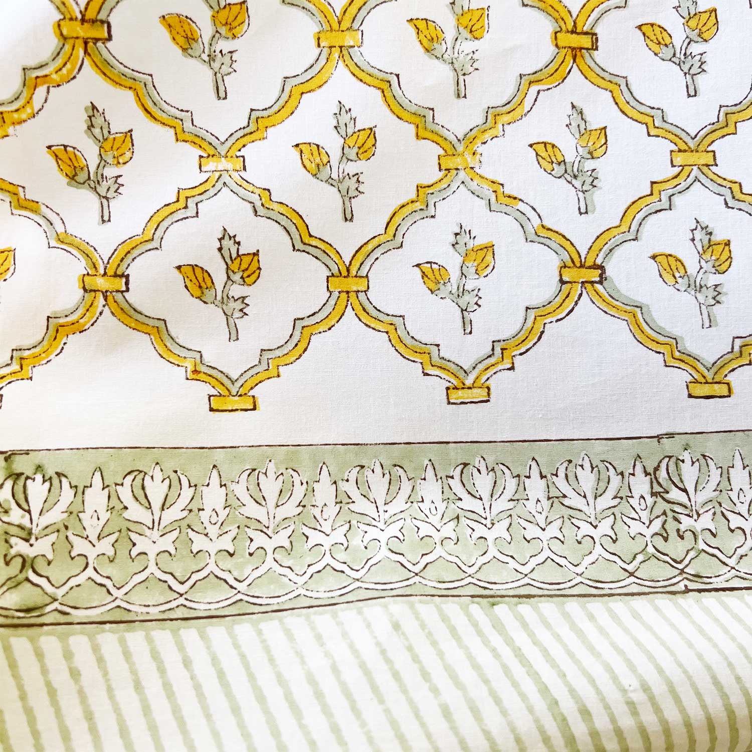 - Percale cotton 250 TC fabric hand-block printed with azo-free dye