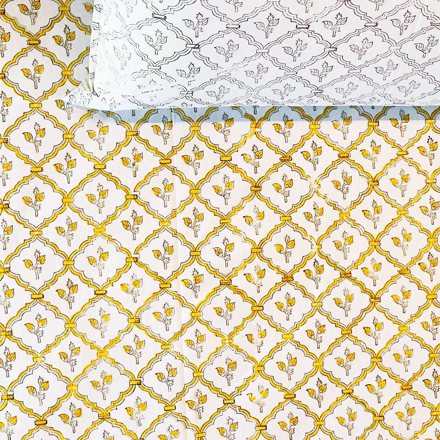 Yellow Jaal Jaipuri Double Bedsheet 108 inches x 108 inches